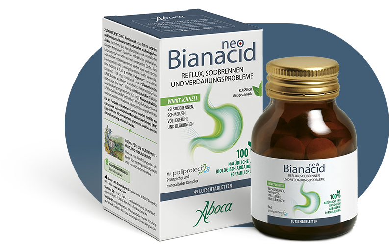NeoBianacid ist eine Produktlinie zur Behandlung von gastroösophagealem Reflux, Magenschmerzen und Verdauungsproblemen.