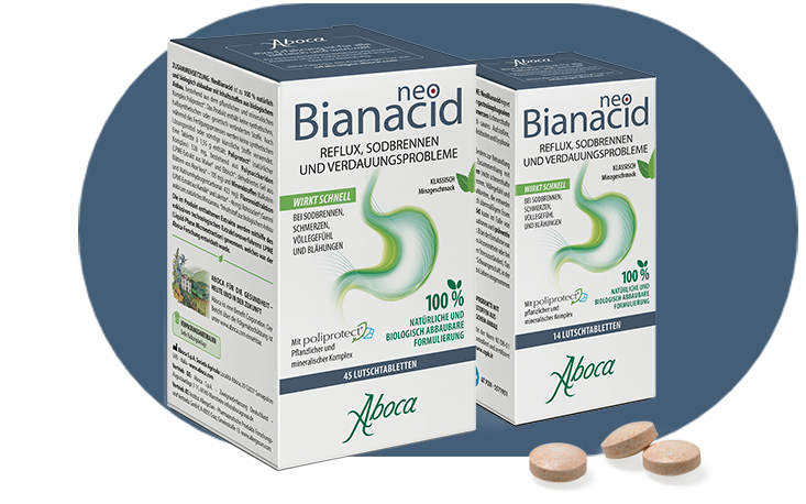 NeoBianacid eignet sich für die Behandlung von gastroösophagealem Reflux und Magenschmerzen (schmerzhafte Dyspepsie), die durch saures Aufstoßen, Sodbrennen, Schmerzen, Reizhusten und Dysphonie gekennzeichnet sind. NeoBianacid dient außerdem zur Behandlung von Symptomen im Zusammenhang mit Verdauungsproblemen (nicht schmerzhafte Dyspepsie), wie Sodbrennen, Völlegefühl und Blähungen nach den Mahlzeiten, die entweder wiederkehrend oder nach übermäßigem Essen auftreten. NeoBianacid kann im Falle von schleimhautreizenden Situationen auch präventiv eingenommen werden (z. B. bei der Einnahme von entzündungshemmenden Arzneimitteln oder bei körperlichen und geistigen Stresszuständen). Das Produkt kann auch in der Schwangerschaft, in der Stillzeit und von Kindern ab 6 Jahren eingenommen werden.